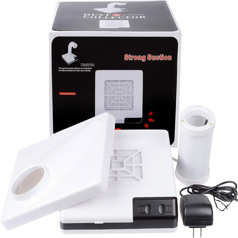 Επαγγελματικός απορροφητήρας ονυχοπλαστικής εξοπλισμένος με ανεμιστήρα ισχύος 60W, που παρέχει υψηλή ταχύτητα αλλά χαμηλό θόρυβο. Απορροφά την σκόνη από δύο εισόδους, τον σωλήνα και την βάση.